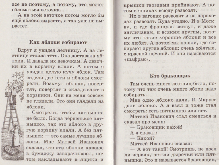 В книге очень-очень подробно описаны самые простые вещи - как ехали по мосту, что такое танк, как растут яблоки, как их собирают, про зоопарк (описаны многие животные), про колхоз...