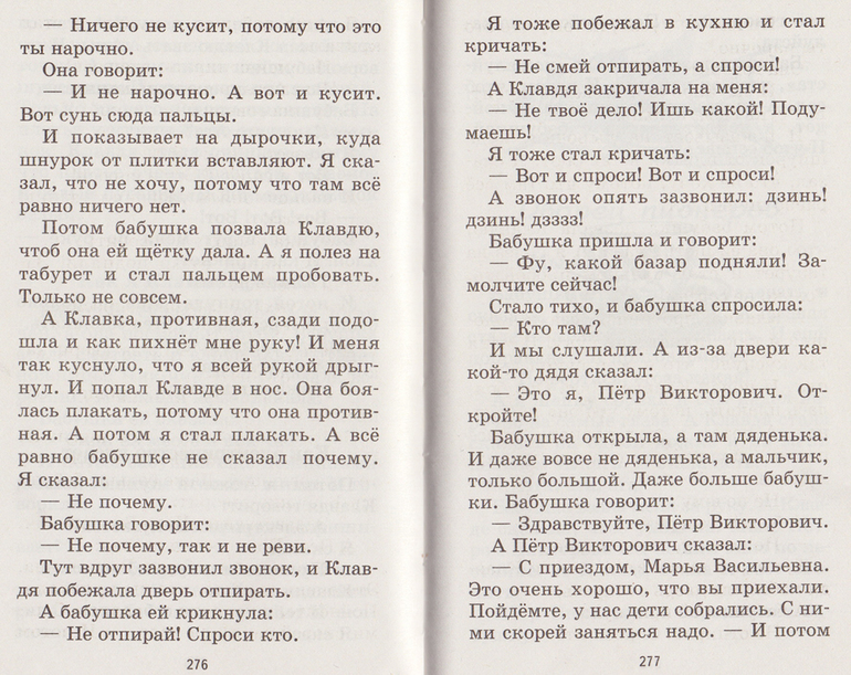 Спасибо. Книга отличная, мой в 4,5 года читал не отрываясь. Всмысле, я читала, а он слушал с открытым ртом. И меня, и мужа она очень увлекла, больше сего запомнился сюжет в лесу с дядей военным, и про детский чад в конце. Насколько живая, реалистичная книга! Так интересно было узнать о том, как жили, чем жили люди в... какие там? 30е годы? Потрясающе))
