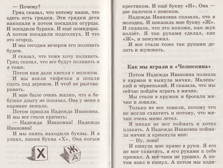 Мне понравилось описание жизни детей в детском саду в деревне - как дружно в группе жили-дружили разновозрастные дети, как старшие заботились о младших, как они все вместе делали общественно-полезные дела - накрывали на стол, поливали грядки... как дети играли в челюскинцев...