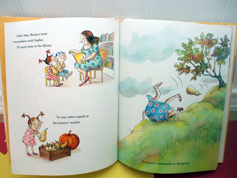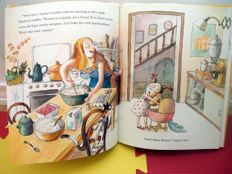 Сначала о том, как Софи нашла свой кабачок - Бернис на фермерском рынке. Потом о том, как она с ним играла. И о том, как мама предлагала пустить его на пирог, потому что не воспринимала увлечение дочери всерьез.