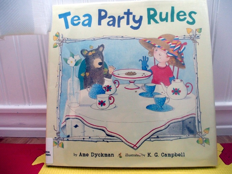 История такая. Однажды маленький медвежонок услышал, что пахнет печенюшками, пришел на запах, и увидел этот стол. Сначала он попросил у игрушечного медвежонка поделиться печенюшкой, но тот почему то не поделился. Тогда медвежонок его вежливо подвинул, нечаянно уронил, хотел поднять, но тут вернулась девочка, и приняла живого медвежонка за своего. Потащила его домой мыть руки, потому что таковы правила чаепития, и наряжать, и красить, и ... медведонок все терпел, потому что очень хотел печенья. В итоге печенье он все-таки получил. А потом они стали играть в медведей, и правила этой игры медвежонок очень хорошо знал.