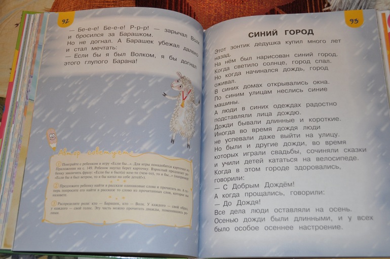 Честно, не знаю, что сказать про самую последнюю часть - все-таки уже немаленькие объемы текста с небольшим для первого чтения количеством иллюстраций. Может, ситуацию спасут предлагаемые игры. Поживем-увидим! Раньше эта книга выходила в меньшем формате, но там были претензии к мелкому шрифту в последней части. В этой же книге шрифт одинаково крупный от первого до последнего рассказа.