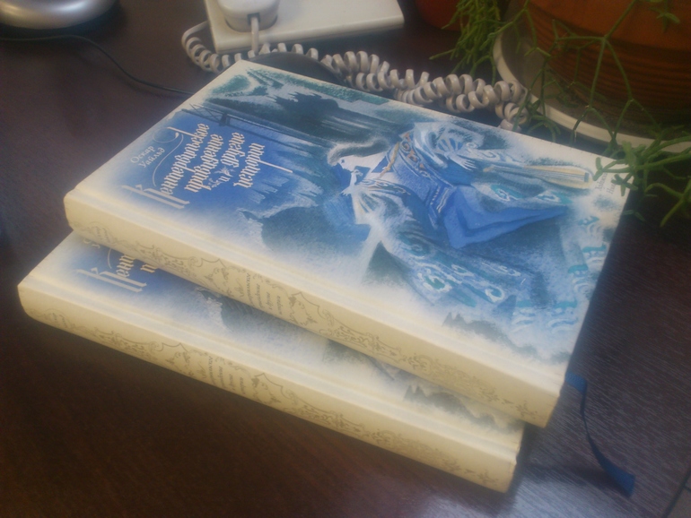 Исполнение. Это, конечно, первые впечатления, но... Ах! Увесистый томик, чуть удлиненного формата. Обложка приятная на ощупь, в матовой пленке, с любимейшим блинтовым тиснением. Форзац и нахзац отличаются. Синее широкое ляссе. Я не люблю меловку без дела, ну тут она совершенно необходима. Она мягкая, нежная, не бликует и не заламывается. И как на ней шикарно смотрятся иллюстрации Ники Георгиевны! Особенно, монохромные. Мне нравится все - и тонировка страниц, и готический шрифт заголовков и нумерации страниц, и комментарии. Шрифт основного текста комфортный.