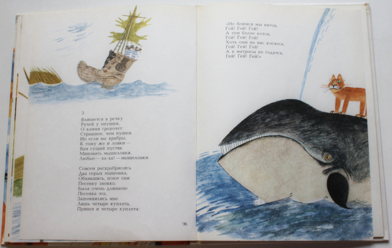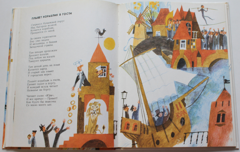 Первая - "Плывет кораблик в гости" с иллюстрациями Евгения Монина (изд-во "Малыш", 1990).