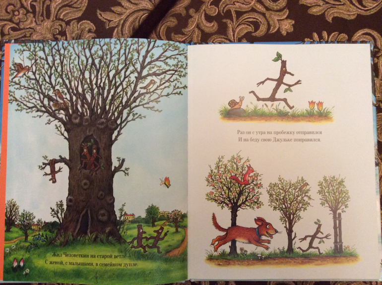 для самых маленькихРебенок зачитал её уже до дыр. Автор Джулия Дональдсон, иллюстрации Аксель Шеффлер.