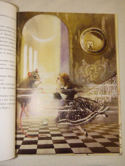 Интересно, причем некоторые иллюстрации кажутся вторичными, сад с висящим котом, длинная шея Алисы, беседа с мышью. Смотришь, и не покидает ощущение, что ты это сто раз видел. Так ведь и кошка Алиса та же самая. Кавайная девочка, больше кавайности, чем характера. Но какие-то детали цепляют. Гусеница любопытная вышла. Буду думать. брать ли в коллекцию. Спасибо, что так подробно показали. А украинский перевод чей?
