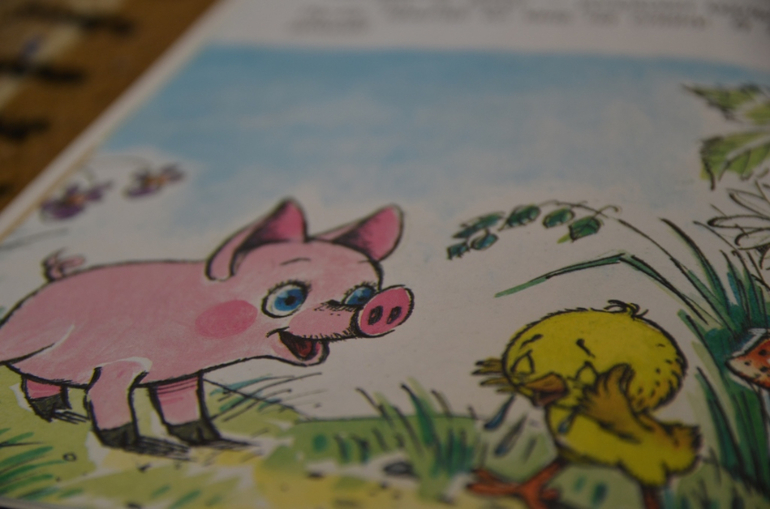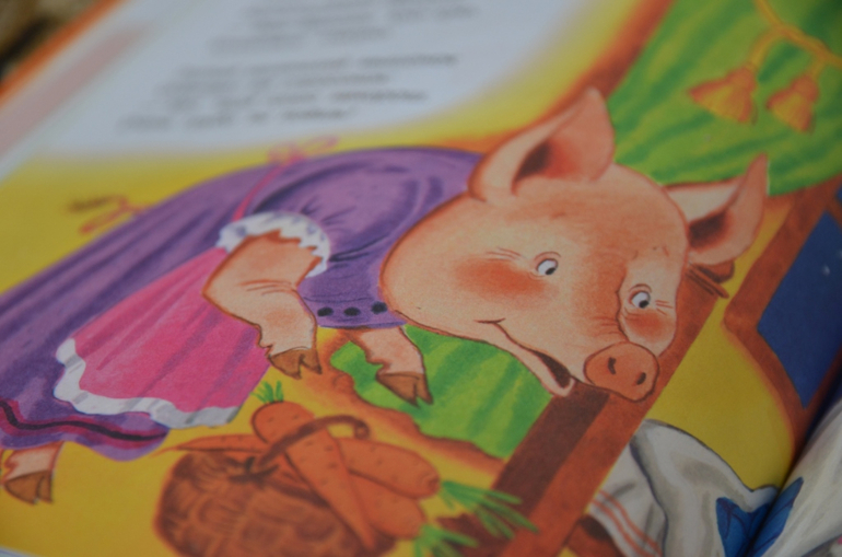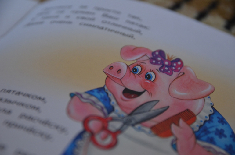 Был как то период, что дочь требовала читать только ее книги, а сын шел на уговоры : Нуууу давай вот эту почитаем, смотри здесь же тоже есть свинка......