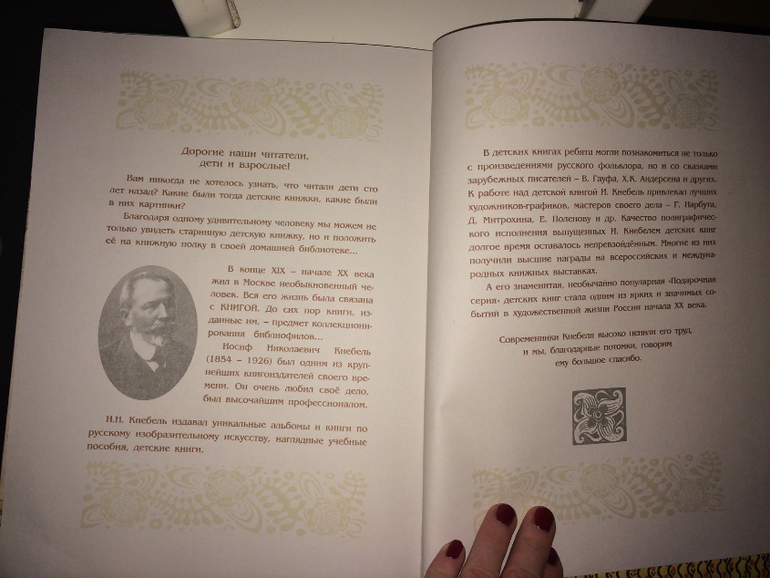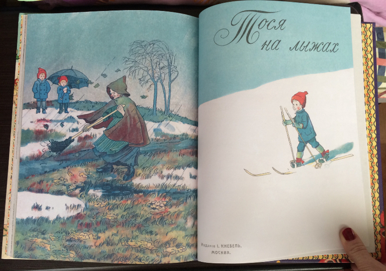 Когда я узнала о существовании книги сказок по изданиям Кнебеля, без промедления ее заказала. И пусть она не претендует на коллекционность, это не важно. Ведь так здорово, так по семейному, дочка сможет прочесть сказки, которые читали ее прапрабабушки! Все сказки кроме "Тося на лыжах" в стихотворной форме. Приятный гармоничный слог, так для детей уже почти не пишут, к сожалению.