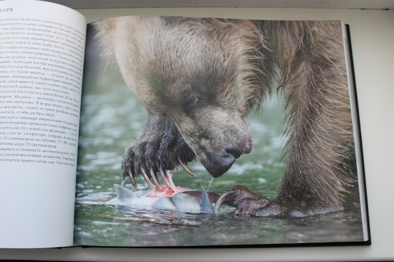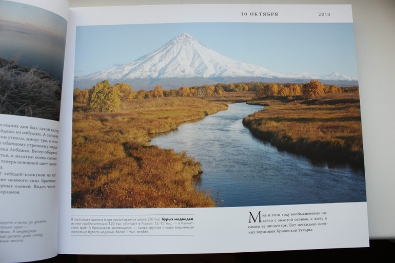 После первого, беглого пролистывания альбома, мы несколько дней подряд вслух по очереди с мужем читали эту книгу друг другу и сыну. Узнали много о природе камчатского края, его реках, горах, вулканах и лесах. Познакомились с медведями, лисами, лосями, росомахами и орлами, запечатлёнными на снимках автора.