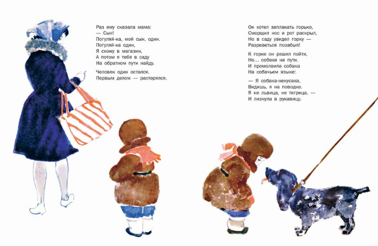 У этого трогательного стихотворения замечательной поэтессы Надежды Михайловны Поляковой очень простой сюжет: мама пошла в магазин и попросила маленького сынишку подождать её на улице. И представьте себе, с мальчуганом за это короткое время случилось множество событий и он нашёл самых разных друзей.