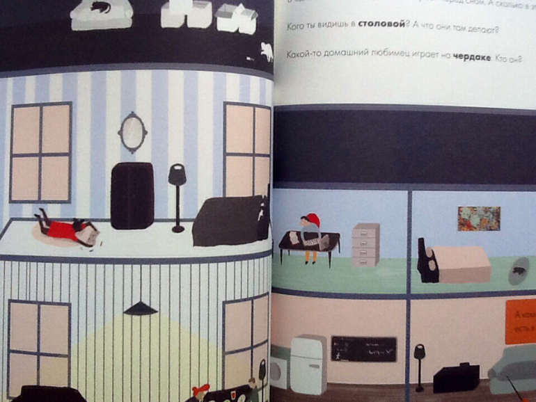 Что же касается оформления книги, то оно очень простое. Иллюстрации не яркие, бумага офсет ( иначе не добиться эффекта просвечивания страниц), обложка из очень плотного картона.