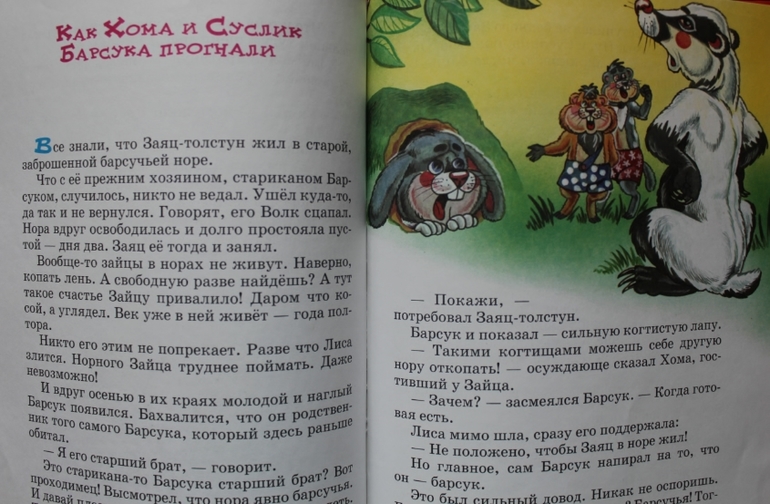 "Приключения Хомы и Суслика" рассчитаны явно в расчете на то, чтобы читающим родителям не было скучно. Очень такой намекающий юмор. Меня где-то даже отталкивает, но местами очень смешно. Совсем необязательная книга, у нас их аж 5, подарок дедушки (что-то этот пост аж переполнен нашим дедушкой и его книгами:), иллюстрации крупные, яркие, в стиле Проф-Пресс). Дочке нравится, взрослых намеков она пока не понимает, видит просто смешные ситуативные истории, регулярно перечитываем.