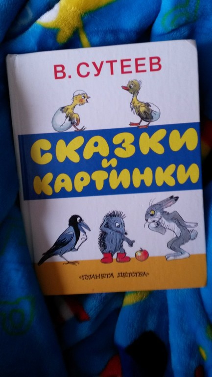 2. Сутеев. Как только я познакомилась с иллюстрациями этого художника, я стала искать еще произведения проиллюстрированные этим человеком и наткнулась на книжку с его собственными рассказами. Конечно же я ее купила. Не скажу, что сыну она очень сильно нравилась, когда он был совсем маленьким, а вот дочка книжку оценила. Ее любимые рассказы Кот рыболов и Дядя Миша. А сынишка-первоклассник теперь читает эту книжку самостоятельно, он не очень любит читать, а тут совсем коротенькие рассказики, которые очень легко и быстро можно прочитать. Книжка очень удобного формата (половина А4), ее очень легко таскать с собой, что мы и делаем.