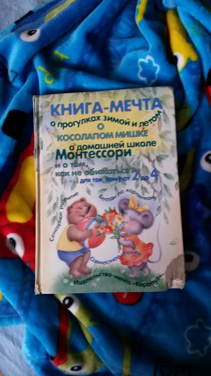 3. Книга мечта о прогулках зимой и летом от издательства карапуз. Еще у нас есть Большой маленький, Про зайку и Еще про зайку этой же серии. Эти книги так же покупались давно, когда сыну был всего годик. Мы с удовольствием с ним их читали, обсуждали. Сейчас читаем с дочкой. Я выделила именно книгу-мечту о прогулках, потому что она нравится мне больше всего. Ее содержание бесценно. Первый раздел посвящен временам года. В историях про Таню и Ваню ребенок узнает о всех временах года, о домашних животных, фруктах, овощах, школе и т п. Короче, рассказы очень интересные, на каждой странице вопросы для ребенка, как обсуждать с ребенком прочитанное. В общем, это не просто рассказы, а целый диалог с ребенком, очень развивает речь. Второй раздел посвящен воспитательным рассказам про Аню и Митю. Без капризов и обид называется. Коротенькие рассказы о том как стоит себя вести, а как не стоит. Есть рекомендации для родителей что делать в той или иной ситуации, если ребенок что-то делает не так. Третий раздел-домашняя школа Монтессори. Расписаны конкретные занятия: что понадобится, как провести занятие. Проще говоря, готовый план занятий по этой методике. Очень познавательно, мы иногда занимаемся по этой методике. Помимо того, для каждого занятия есть рассказ про обезьянку, мишку и кошечку. Например, самое первое упражнение: собрать ягодки (шарики пластилина) с веток ( на нитку вешаем скрепки) и тут же рассказ в книжке читаем, как друзья собирали ягоды, потом они у них просыпались (а мы уже с дочей делаем следующее упражнение, собираем с пола просыпавшиеся ягоды) и тп. Короче, очень интересно. Четвертая часть-это рассказы про Мишку и Мышку. Мишка рассказывает сказки и играет с мышкой, а мы читаем и обсуждаем, отвечаем на вопросы Мишки (еще планирую купить куклу перчатки Мишку, чтобы дочке интереснее было), но вопросы там пока что дочке не очень легко даются. Мы не очень активно читаем эту часть, думаю, что нужно доче немного подрасти. В общем, оды я этой книге могу петь сколько угодно. Подобных книг не видело, с беседами по картинкам и вопросами для детей встречала много, но чтобы это было ТАК преподнесено, в общем очень рекомендую эту книгу с 1 года и лет до 5. Книга большая и толстая, но дочка спокойно ее таскает. Раньше можно было купить все четыре части по отдельности, но когда я заказывала, их уже не было в наличии.