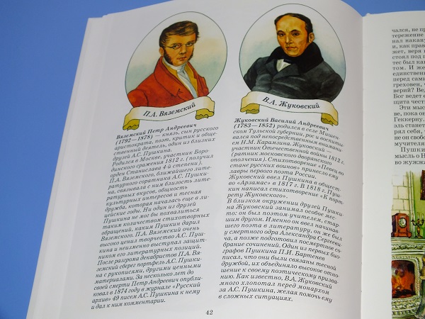Помимо основного текста в книге есть биографии всех его друзей и других людей, связанных каким либо образом с Александром Сергеевичем. Они не такие объемные, но в целом дают представление о человеке. Я думаю, тоже пригодятся в школе (вне темы Пушкина - Карамзин, Баратынский, Жуковский, Вяземский и другие).