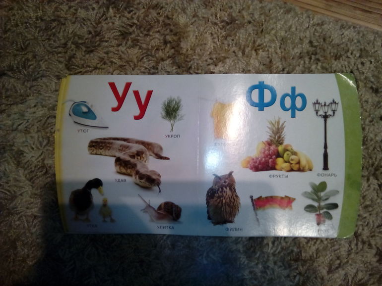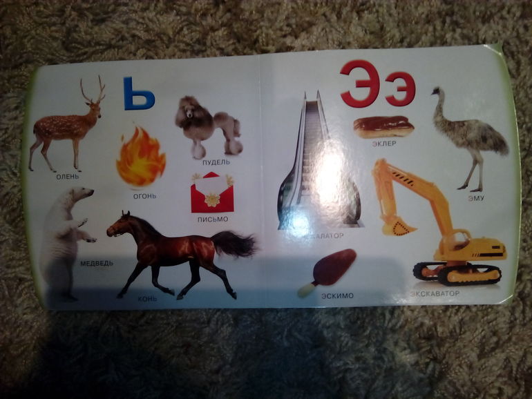 Азбука служит для тех же целей. Здесь на каждой странице фотографии кого то и чего то на букву алфавита.