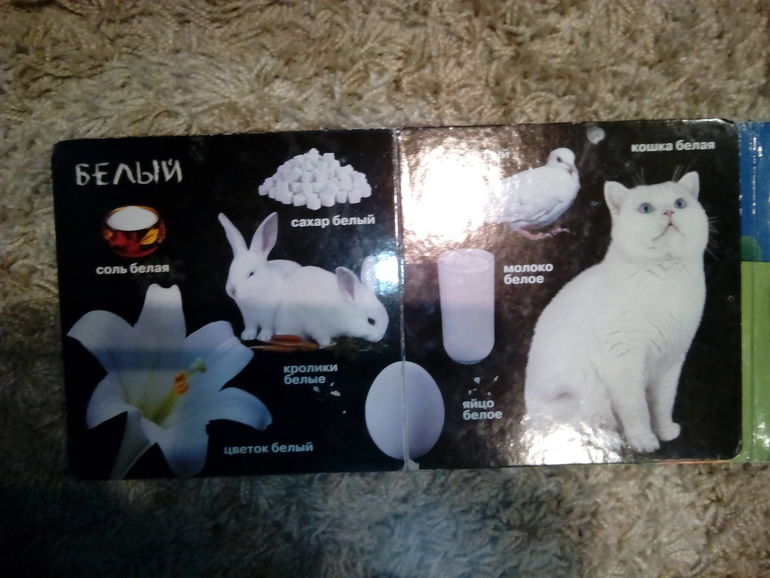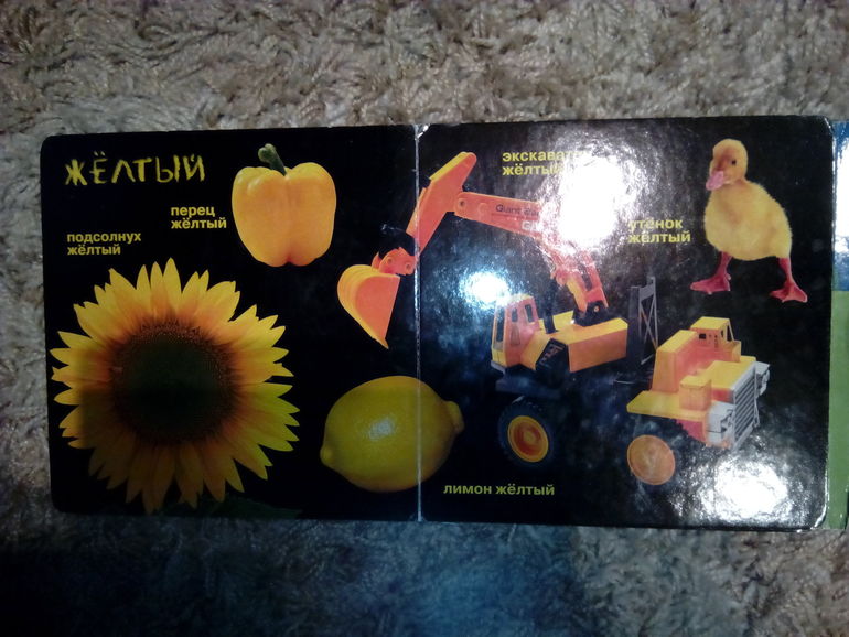 Это книга для изучения цветов. На мой взгляд идея очень хороша тем, что в книге не про сто иллюстрации, а реальные изображения. Мы используем ее для изучения мира и для рассматривания. Обогащаем пассивный словарь.