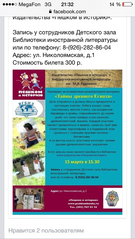 мероприятияДорогие все! Издательство пешком в историю организует завтра, в воскресенье занятие для детей возрастом 4-8 по древнему Египту.