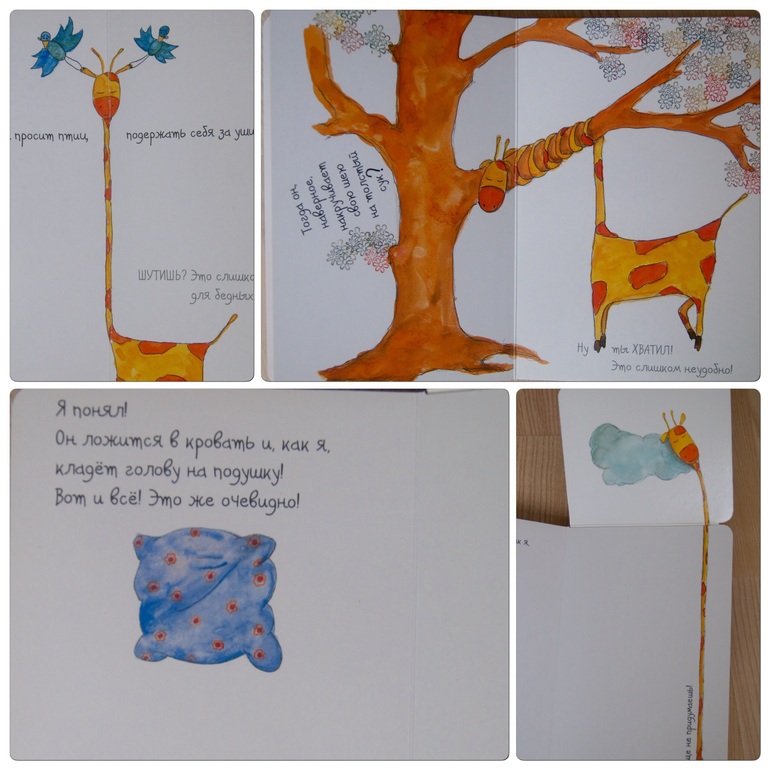 Смысл ее прост: вы никогда не задумывались над тем, как спит жираф? Теперь определенно задумаетесь! Вот и в книге на каждом новом развороте предлагаются варианты, один другого смешнее.
