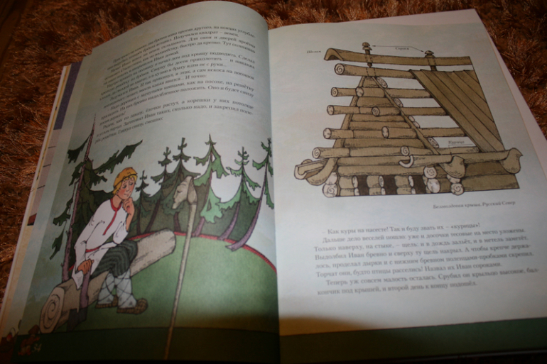 Заодно там и рассказано, как какие части избы называются, как строят такие дома. Между делом , наглядно и интересно.
