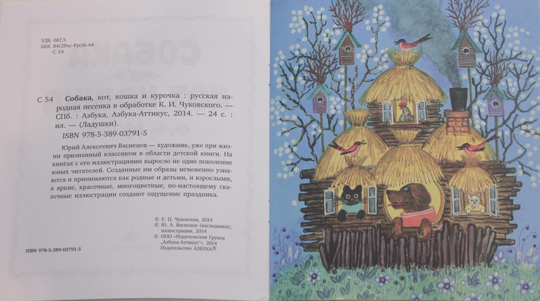 Мой сынуля тоже из тоненьких книжек от "Азбуки"  выделил книжку "Собака, кот, кошка и курица", хотя мне показалось, что для нас там маловато текста. Очень понравились ваша Курочка Ряба и Михалков с Сутеевым.