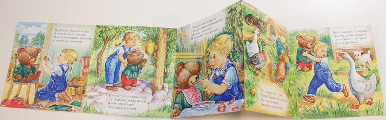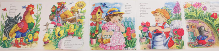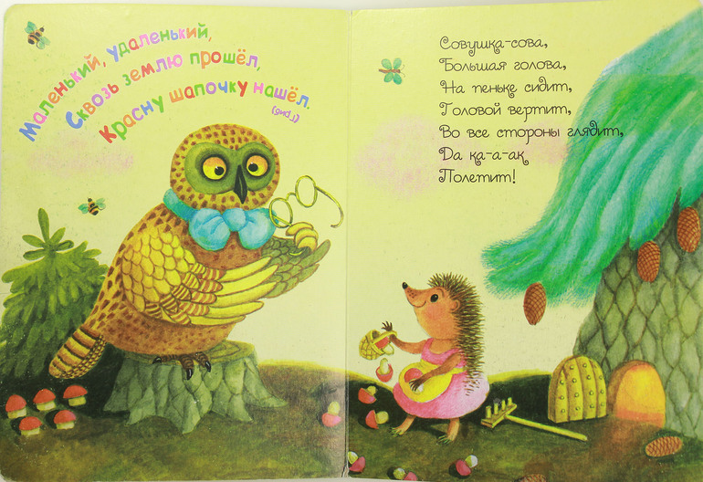 Будто с наших полок доставали))) У моего сына тоже эти Ладушки — первая серьёзная любовь, я на радостях разных книг с Васнецовым накупила (Болтали две сороки, Чижик знает песенку, про Лиса и мышонка Бианки), но к ним ребёнок равнодушен, а Ладушки до сих пор в фаворитах. Книги от изд-ва "Улыбка" не пользуются спросом(, зато обожаем "сезонные" книжки-гляделки Р.Бернер. И ещё вместо Зоопарка — у нас Морды), любим!