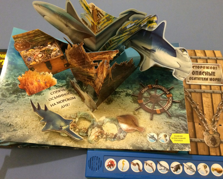 Слева от панорамки (неотделима от книги - не потеряется) узкая книжечка с описаниями видов (фото 3), снизу кнопки с голосами животных,а справа кармашек с животными для заданий (фото 4).