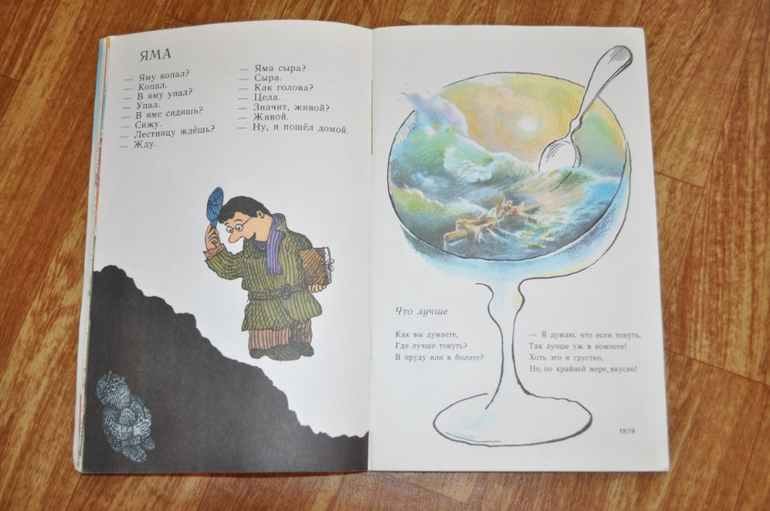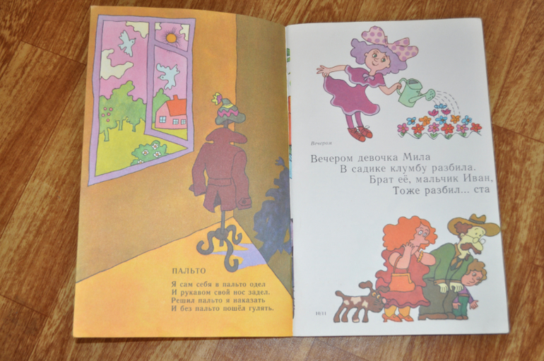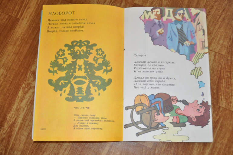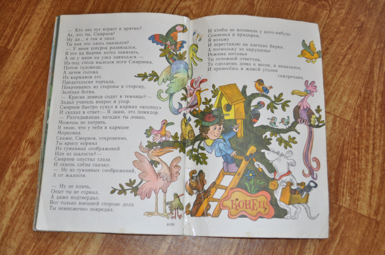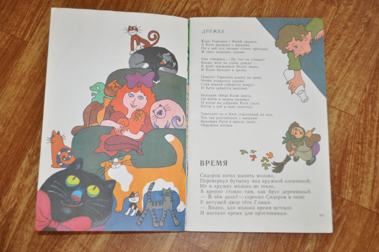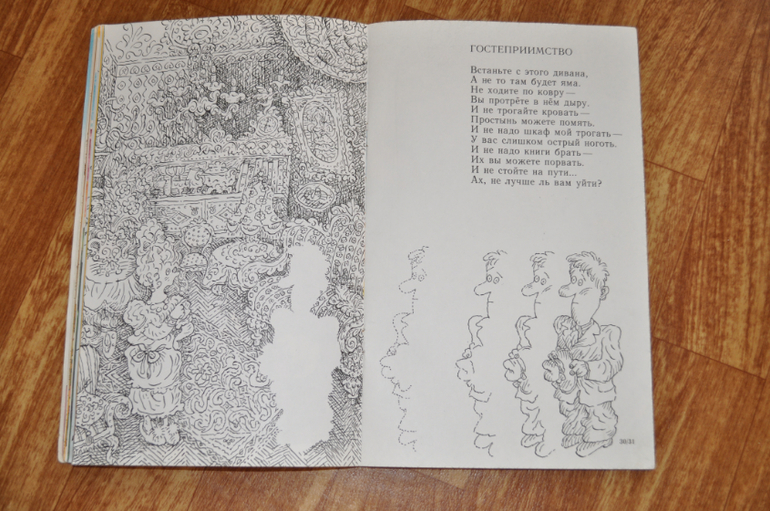 Мне прям стало интересно, в каком году рисовались иллюстрации к этой книге , а в каком году к книге Бориса Заходера "Мой лев", но я не умею искать такую информацию... Казалось бы, к бесшабашным стихам Олега Григорьева должны быть такие же иллюстрации, но по сравнению с иллюстрациями к Заходеру Дмитрюк тут более разнообразный, но в целом более спокойный. Но все равно дуэт очень удачный! Была бы рада переизданию. Смотрите сами: