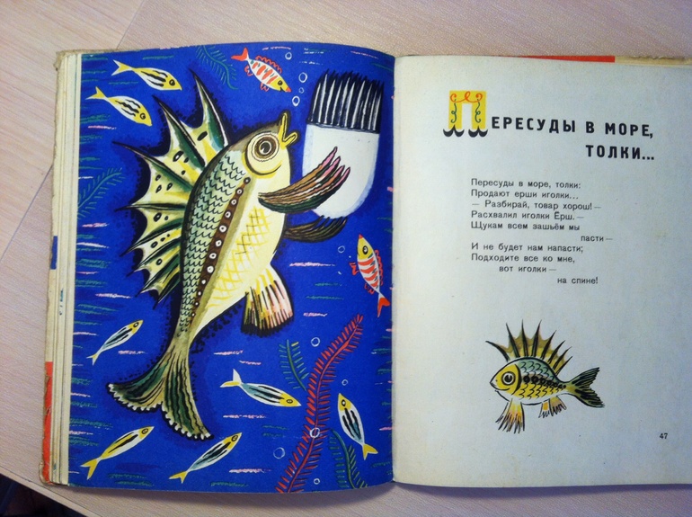 букинистикаСмотрела я все на новенькие книжечки стихов Екатерины Серовой от "Речи", и все казалось, что где-то я уже видела и этих ершей, и этих мышей... Нет, в детстве мне не довелось познакомиться с ее творчеством, но вот чувство дежавю меня не покидало. Надо признаться, что я не большой знаток художников-иллюстраторов, и только благодаря этому сообществу узнала много новых имен и стала отличать их по рисункам. Сегодня перебирая книги обнаружила: так вот же они знакомые "лица", нарисованные Борисом Калаушиным!