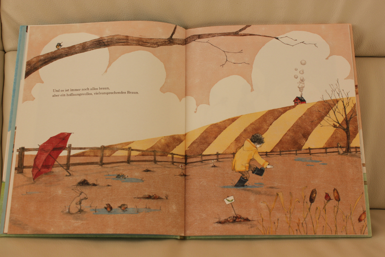 Эта книжка с очень простым текстом о том, что очень долго было все коричневое, а потом в один день все стало зеленым! Пришла весна! Очень интересные иллюстрации!