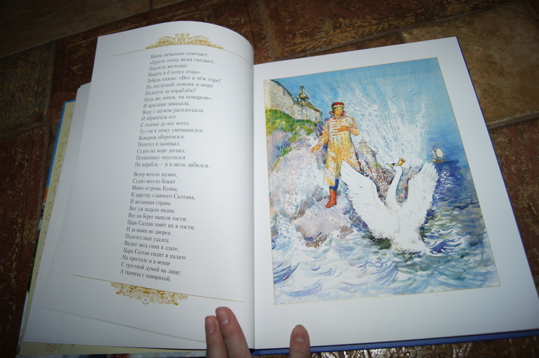 И вот мое приобретение… Этот Пушкин должен быть у всех. Мне не хватит слов, это больше тактильные ощущения. Только скажу, что это хорошая книга в русских традициях по отличной цене. Я не смогу описать словами качество бумаги, традиционные русские иллюстрации…