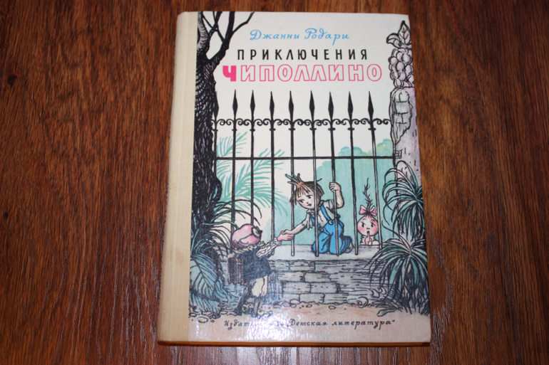 "Приключения Чиполлино" Джанни Родари с иллюстрациями Владимирского. У нас дома есть издание с рисунками Чижикова (уж очень сын любит этого художника, да и у меня самой в детстве была книга с его работами). Но и эту оставлю дома, уж больно симпатичная и сохранилась прекрасно.