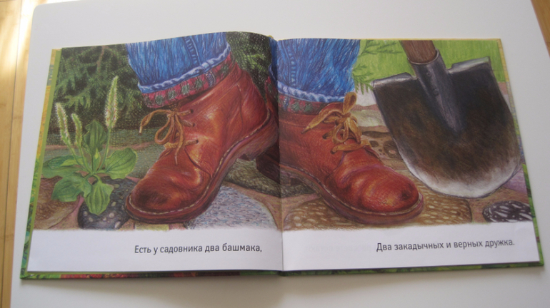 Начну с замечательной книжки Два башмака Александра Коняшова. Там всего одно стихотворение небольшое, но замечательные классные картинки. Артуру очень понравился и текст и картинки. Стоило увидеть один раз - и она попала в список фаворитов. Так что однозначно рекомендую