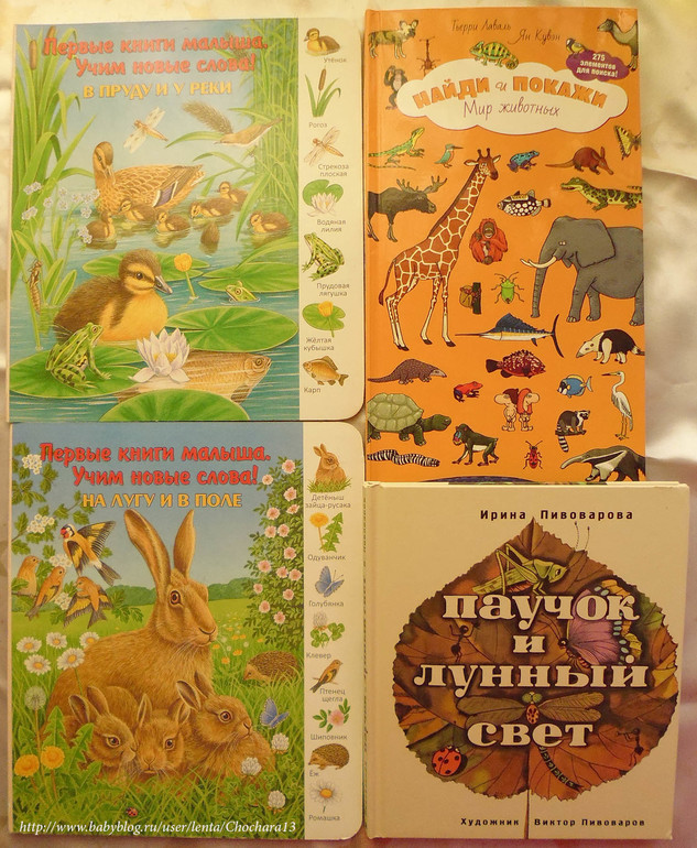 Сейчас это самые востребованные книги про природу и животных. В основном гляделки плюс коротенькие сказки от Ирины Пивоваровой, которые всегда под конец рассказывают что-то интересное из жизни насекомых)