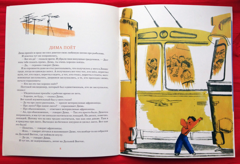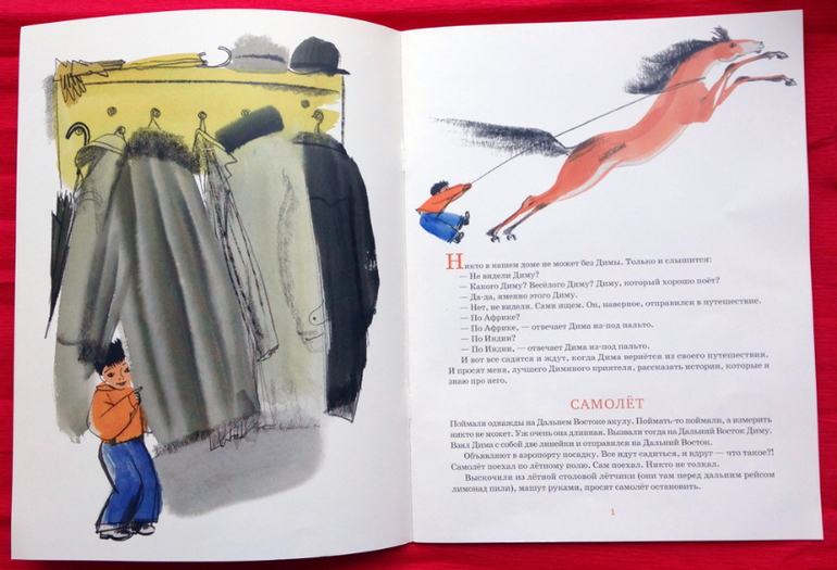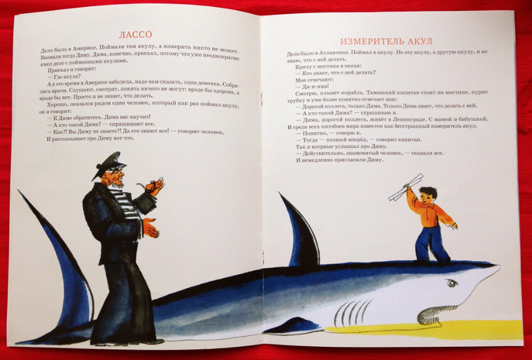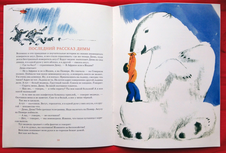 Книжка в мягкой обложке издана на мелованной тонированной бумаге. Книга небольшая, но на этих красочных двенадцати страницах умещается такой вихрь событий, что за ним только и успевай следить! Вот Дима мчится на помощь, чтобы остановить «убежавший» самолет, вот он укрощает дикую лошадь, исцеляет больную девочку, ловит кровожадного тигра. А уж если вам надо измерить гигантскую акулу - то это точно только к Диме!