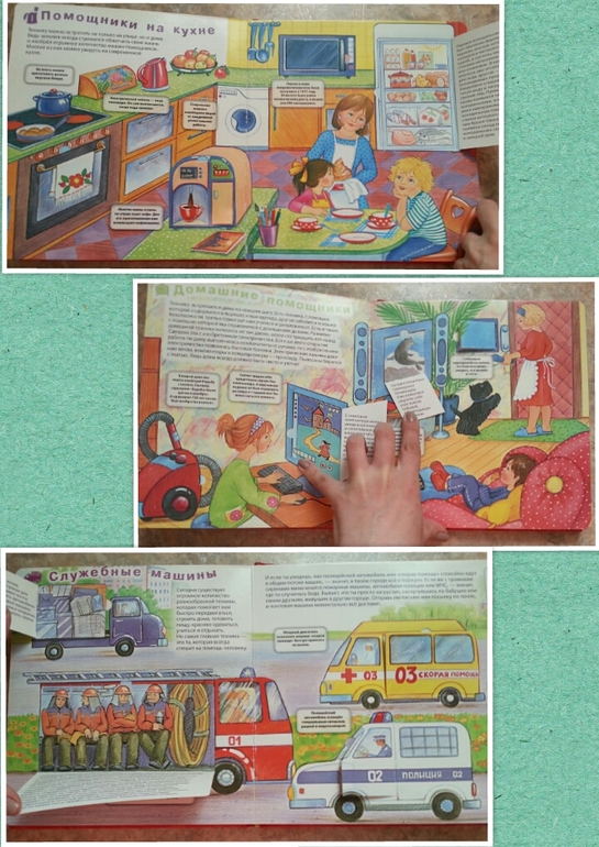 отзывыВидимо папу тоже накрылокниголюбовью. Аот принес вчера книгу сыну. Хоть и стоит пометка от 5 лет, в наши 1,9 прекрасно идет. 8 разворотов с окошечками, про дом, стоительную, космическую, служебную и городскую технику. Иллюстрации не очень яркие, это в плюс. Можно придумывать истории. Еще есть текст про все машины, его немного, но он помогает если вы что-то не знаете