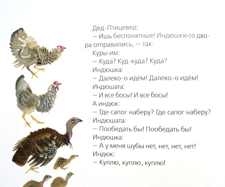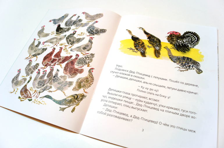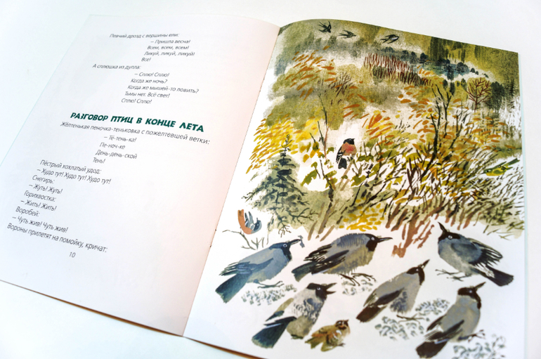 Как-то мне было сказано (да-да, Настя Демчикова, это была ты :)), что Птичьи разговоры - замечательная книга, и это засело у меня в голове. Но сколько я ни разглядывала развороты в лабе, не могла понять, что же в ней такого выдающегося. Ну, Чарушин, да. Чарушины всегда хороши, всем своим талантливым семейством. Но текст! Всё такое странное. Как это вообще читать?