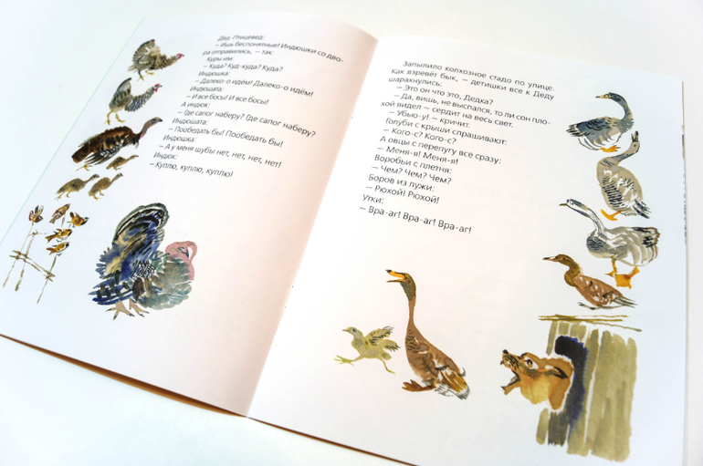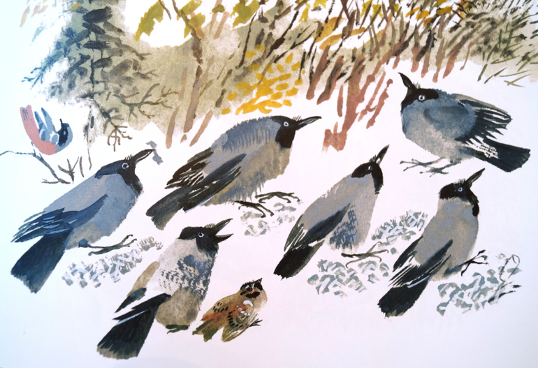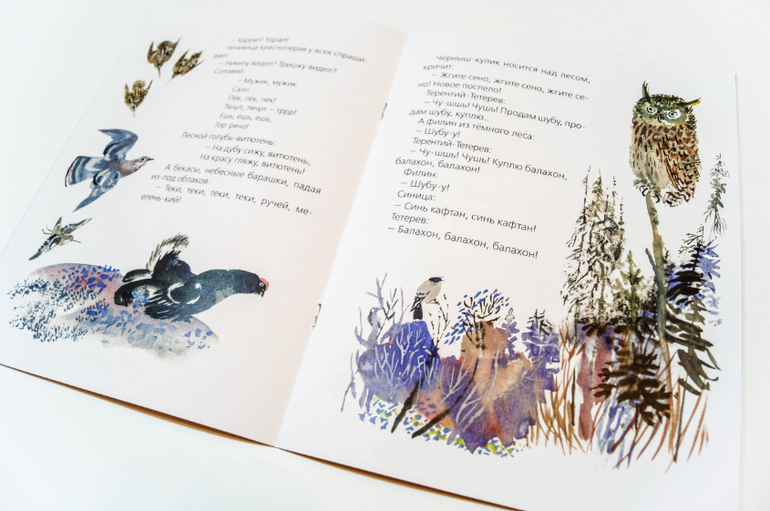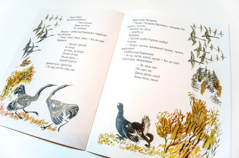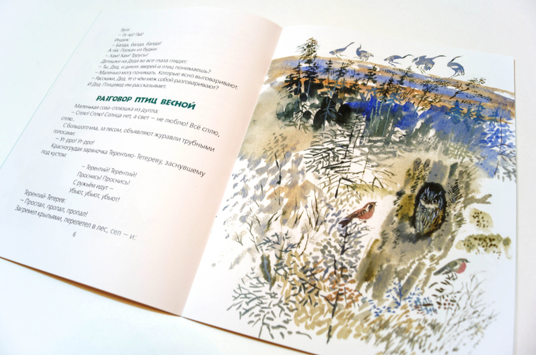 Так, выдохнула, пора приступать к заключению. Ономатопеи ономатопеями, но лингвисты они такие ребята, горазды изничтожить поэзию языка, копаясь в прекрасном, загоняя субъективное в объективное и раскладывая всё по бездушным полкам. Так что мы, как нормальные люди, просто возьмём эту маленькую книжку в руки и станем немного ближе к природе, чувственно и без оглядки. С ещё одним волшебником под ручку, с художником Никитой Чарушиным: