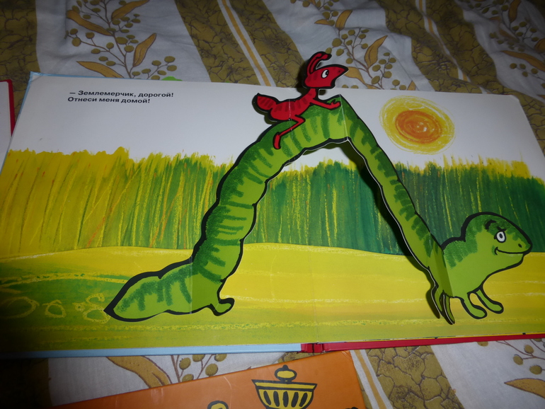 Начнем с книжек, которые Катюша оценила первыми. Это большие книжки "Самовар" Хармса, "Путешествие Муравьишки", "В лесу родилась елочка" с иллюстрациями М. Покровской. В них объемные раскладывающиеся картонные картинки. Главное, следить, чтоб малышня не порвала