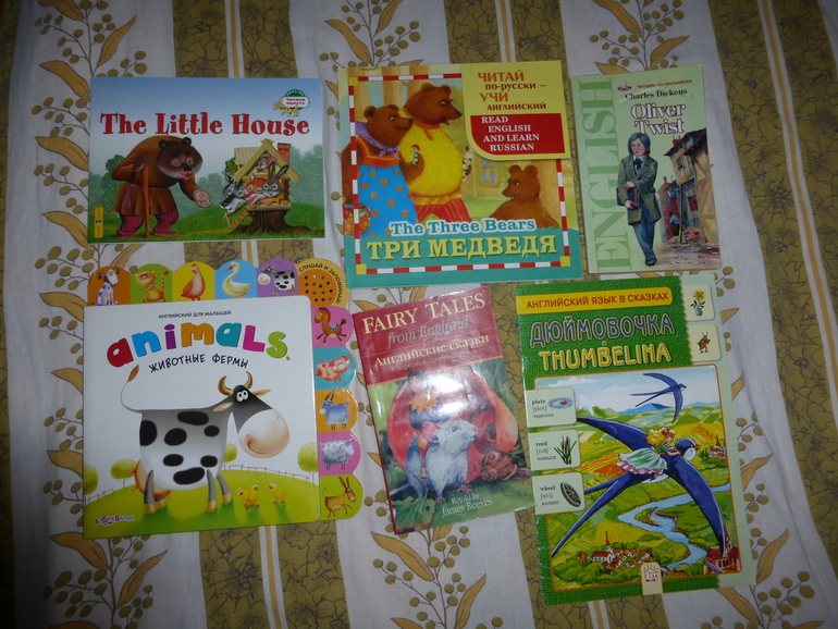 Ну и последнее. С рождения читаю Кате не только русские, но и английские книжки. Раньше читала просто сказки без картинок, теперь покупаю малышковые:
