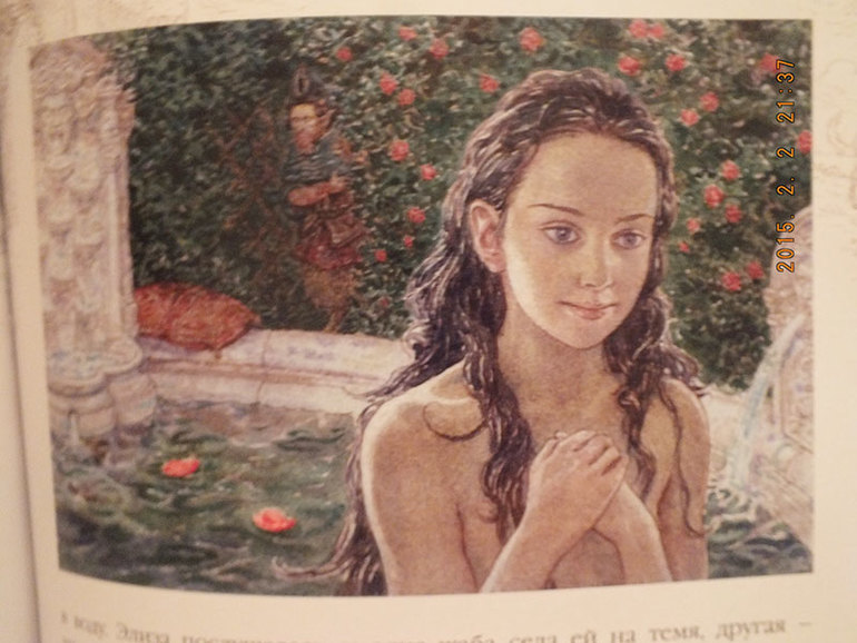 Напечатана книга просто выше всяких похвал. Не толстая и не тонкая. ОЧЕНЬ красивая. Кстати, рисунки мне сначала показались расплывчатыми. Но нет, оказалось, что это задумка художника: нигде нет четкой прорисовки, очень мягкие рисунки. А их действительно хочется рассматривать. Я уже писала, что она лучшая в моей библиотеке??)