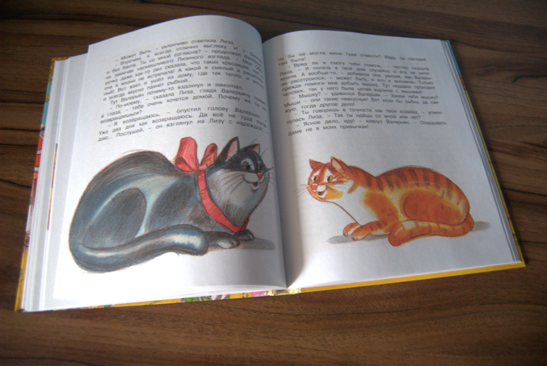 И вновь серия Сказочные повести, а значит те же преимущества оформления, так же много иллюстраций Бориса Тржемецкого, причем здесь они еще и случаются на полный разворот! Сами рисунки очень приятные и добрые, а кот Валерьян почему-то очень напоминает мне котов Чижикова :)