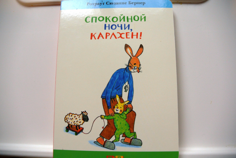 Сейчас мы читаем Спокойной ночи и Доброе утро. Отличные книги. Плотный ламинированный картон, качество печати изумительное. Картинки очень приятные. С Сашкой мы обсуждаем, что нарисовано и по тексту тоже читаем. Если присмотреться можно увидеть много интересного. Чудесные и очень милые картинки! В книги создается ощущение динамики, вот семья зайчиков ужинала, а вот уже мама со стола все собрала, а на следующем развороте видимо, что и посуду всю перемыла... Мне кажется книги Сузанны Бернер можно рассматривать бесконечно! Так похоже все! И у нас есть светильничек, комод почти такой же, часы, кубики на полу...
