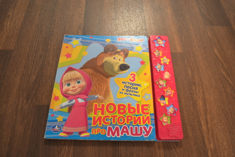 Книжка-картонка. Дочь без устали может нажимать кнопки и слушать фразы или песенку. От чего порой у меня болит голова