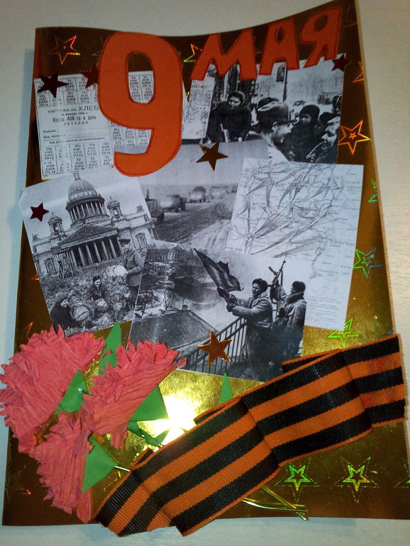 Тут как раз в сад надо было сделать открытку к 9 мая. "Про Ленинград " решила дочь, и вот что получилось.