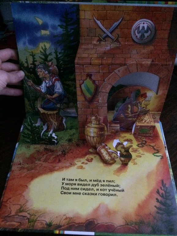 Вторую книгу, точнее книжку-панораму я просто заметила на Рид.ру и решила приобрести, и ничуть не жалею об этой покупке. http://read.ru/id/3567199/ Книга называется просто "У Лукоморья" и рассчитана на приобщение к произведениям Пушкина самой малышковой аудитории. Дочка готова слушать ее по пять (а то и больше) раз по кругу, все расспрашивает, рассматривает, очень живо воспринимает происходящее "Ой, а волк ключ от темницы с царевной утащил!" Или "А можно мне с котом ученым по цепи походить?" В общем, ребенок принял книгу на ура. И первые десять строчек наизусть знает, почти:) с небольшими запинками/заминками))) и да, книжка сделана достаточно крепко, то есть вот Полина очень любит гладить ученого кота и он до сих пор жив;)