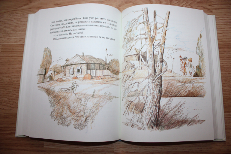 А вторая история под этой обложкой насквозь пропитана летом. "Гуси-лебеди" - это повесть о девочке Аниске, всю жизнь прожившей в деревне. В один прекрасный день к их соседке приезжает погостить из города внучка Светлана. Всё в ней очаровывает Аниску и она изо всех сил пытается подружиться с новой знакомой. Ведь друзей у Аниски нет: деревенские ребята смеются над ней из-за её трепетного отношения к природе. Аниска не даёт мальчишкам разорять птичьи гнёзда, дерётся с обидчиками кошек и подолгу одна бродит по лесу. И сначала Светлана и Аниска находят общий язык. Но вскоре балованной городской девочке наскучило общество Аниски: она не понимает её и тоже считает странноватой. А Аниска всё пытается ей угодить: помогает пропалывать грядки, приносит красивые цветы, отводит в свои самые любимые места в округе... Но всё в пустую. Сердце новой подруги оказывается глухо к переживаниям Аниски и до самого отъезда Светлана относится к ней, как к игрушке: то зовёт поиграть, то смеётся и гонит прочь...