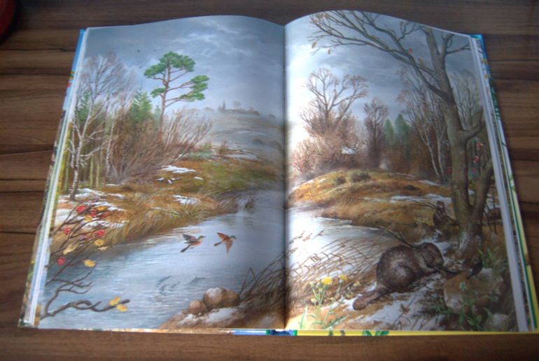 Увесистое издание большого формата, отличная полиграфия, матовая плотная мелованная бумага, изумительные иллюстрации: животные и растения реалистичны, а обзорные развороты по месяцам вообще как картины из галереи.