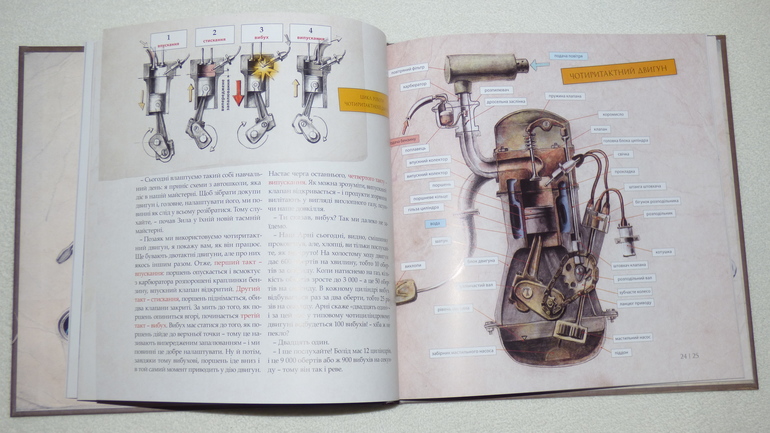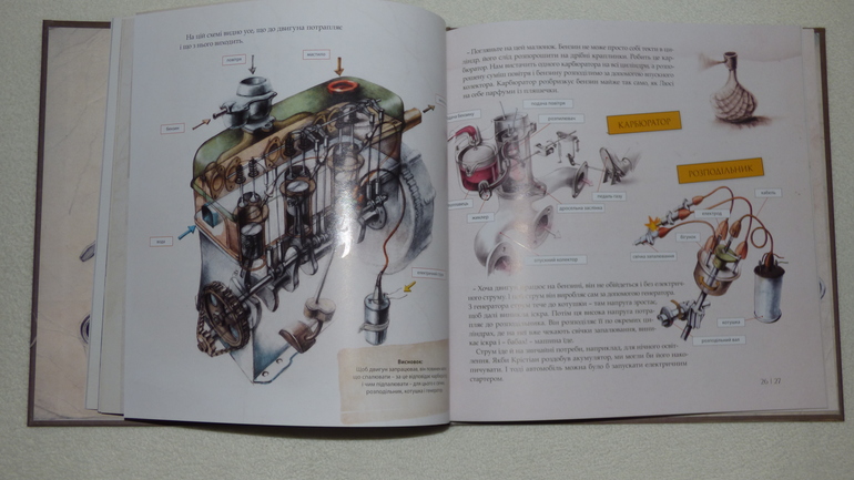Понятных розъяснений по деталям нет. Лично мне, т.к. я не разбираюсь в машинах, ничего не понятно. Т.е. объяснение разбирающегося взрослого, необходимо. У меня одна надежда, что муж займется. Я, не смогла. И мы книгу отложили.