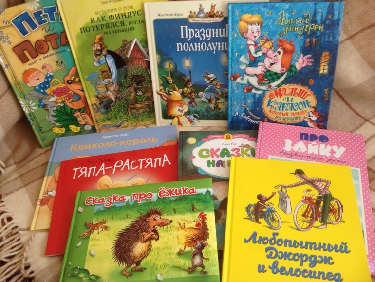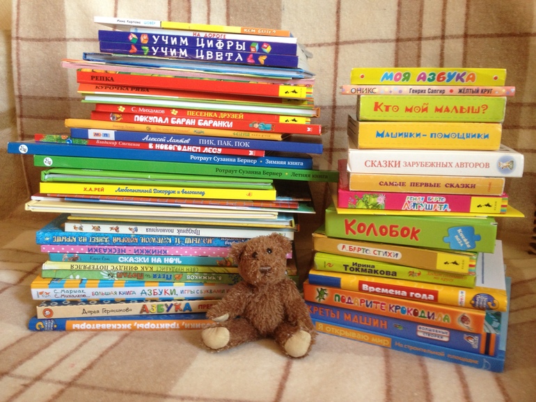 Обычно мы читаем на ночь (мама работает, днем времени нет), но подолгу и помногу: книг пять-семь, некоторые целиком. Обычно выбор книг делим пополам: Ванюша тащит свои любимые, мама предлагает новинки и напоминает о забытых-заброшенных книжках.